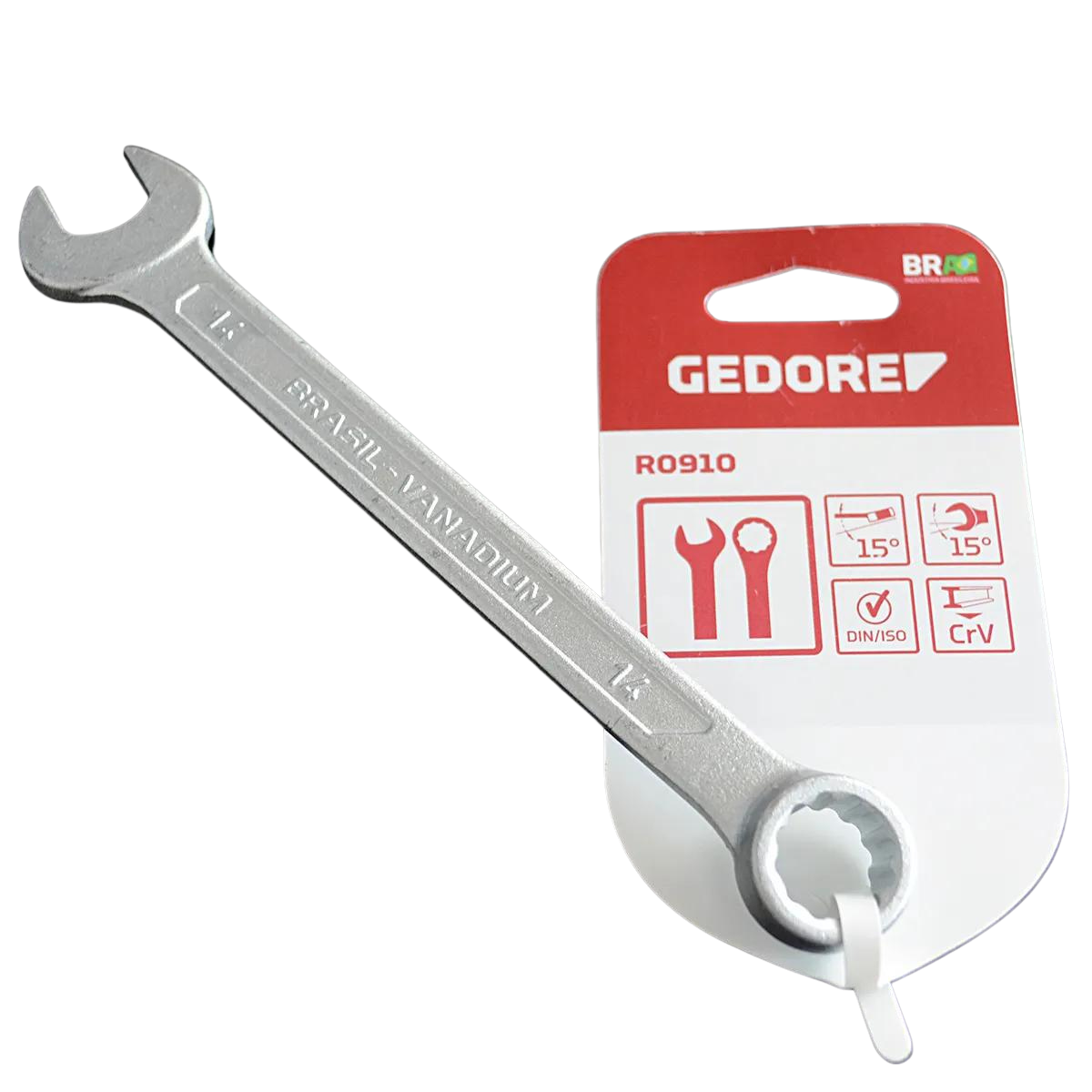 Marca: Gedore Red Modelo: R09100140 Referência: 3365110 Dimensões: 14mm Posição da boca: 15° Material: Aço cromo-vanádio Acabamento cromado fosco Peso: 0,075Kg Garantia contra defeitos de fabricação.